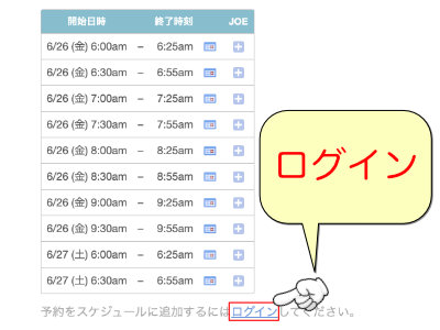 お気に入りの講師ページからカレンダー下部にある「ログイン」をクリック。