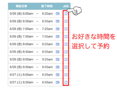お好きな時間帯をクリックして、予約を完了させて下さい。